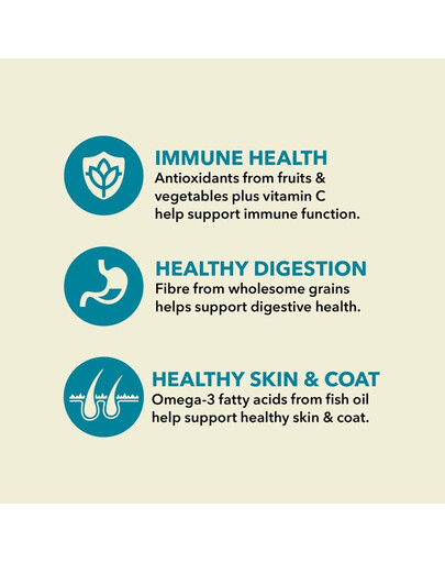 L'ajout de fruits, de légumes et d'herbes améliore l'appétence et la saveur de cette nourriture. Les pommes, les poires et le potiron apportent des vitamines naturelles et des antioxydants qui soutiennent le système immunitaire.