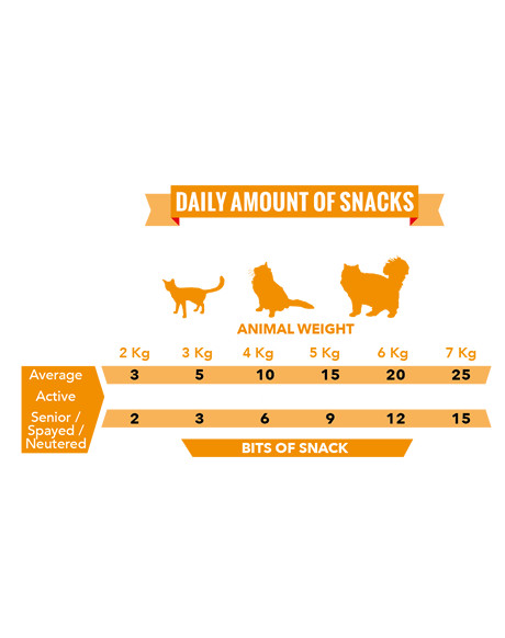 Les snacks sont une bonne récompense pour un comportement correct ou l'accomplissement d'une tâche, une incitation au jeu et un enrichissement du régime alimentaire. Les cubes peuvent être placés dans des jouets intelligents et enfouis dans des tapis olfactifs. Un tel exercice intellectuel et olfactif sera une excellente activité pour le chat et activera ses instincts naturels.