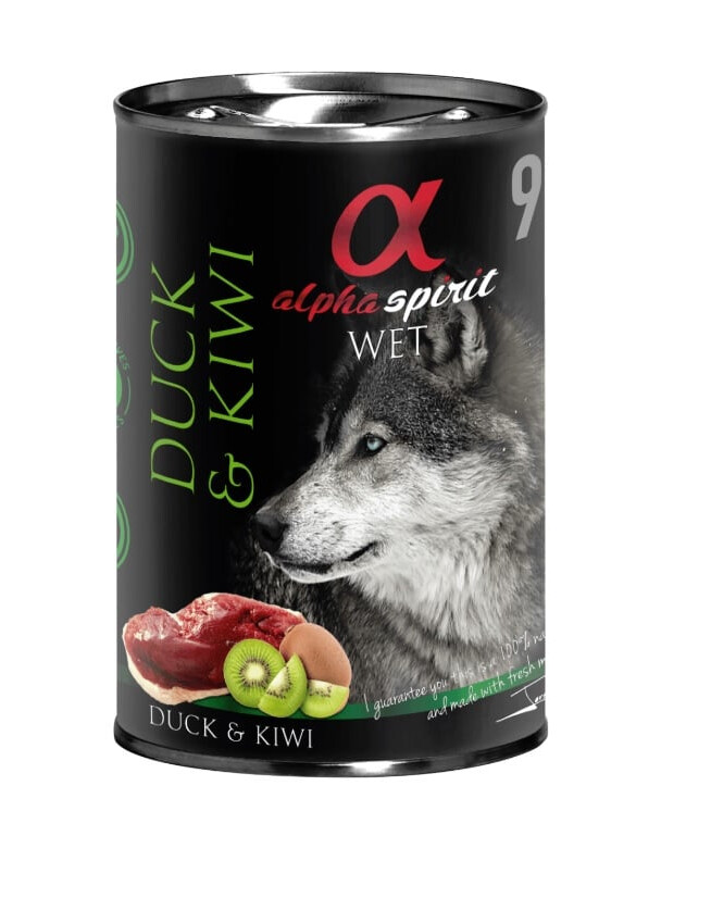 Contient une combinaison unique de saveurs - de la viande de canard fraîche avec des kiwis et des additifs. La teneur très élevée en viande - 92% - rend cet aliment très sain et attrayant pour les chiens. La viande de canard est très digeste et nutritive pour les carnivores. Elle contribue à maintenir l'organisme en bonne condition. Le kiwi contient beaucoup de vitamine C, qui renforce le système immunitaire.
