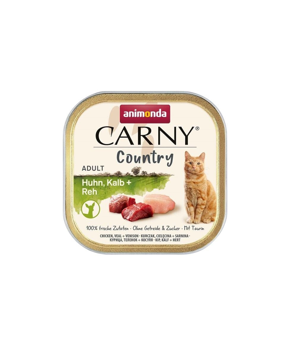 Carny Country Adult est une nourriture humide pour chats préparée à partir d'ingrédients frais provenant de la campagne afin d'offrir une plus grande variété lors des repas. Elle est adaptée aux besoins des chats adultes de 1 à 6 ans et leur fournit tous les nutriments nécessaires ainsi que de la taurine.