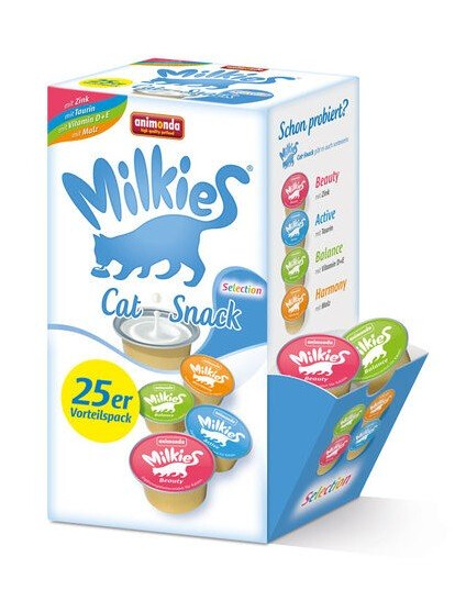 Animonda Lait pour Chat Milkies Active - ensemble de 20 capsules x 15 g. Une friandise idéale pour le chat, à donner entre les repas ou à verser sur les croquettes