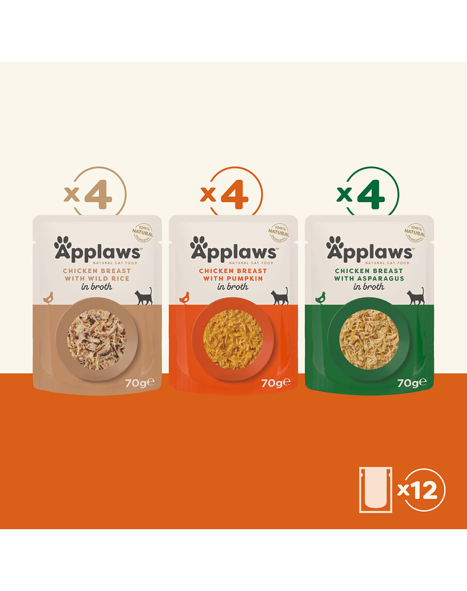 L'aliment contient des ingrédients sélectionnés - des morceaux de viande de poulet pure, avec l'ajout de riz et de citrouille. L'ajout important de légumes augmente la quantité de fibres et peut donc aider les chats souffrant de constipation.