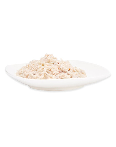 Cette nourriture contient des ingrédients sélectionnés - des morceaux de viande de poulet pur, avec l'ajout de riz.