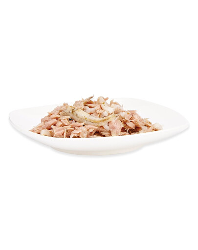 L'emballage unique, partiellement transparent sur le devant, vous permet de voir le contenu du sachet. L'emballage du sachet est protégé par un brevet du fabricant (demande : 0921947.8). La nourriture contient des ingrédients sélectionnés - de purs morceaux de filet de thon, avec l'ajout de riz, d'algues et d'anchois.