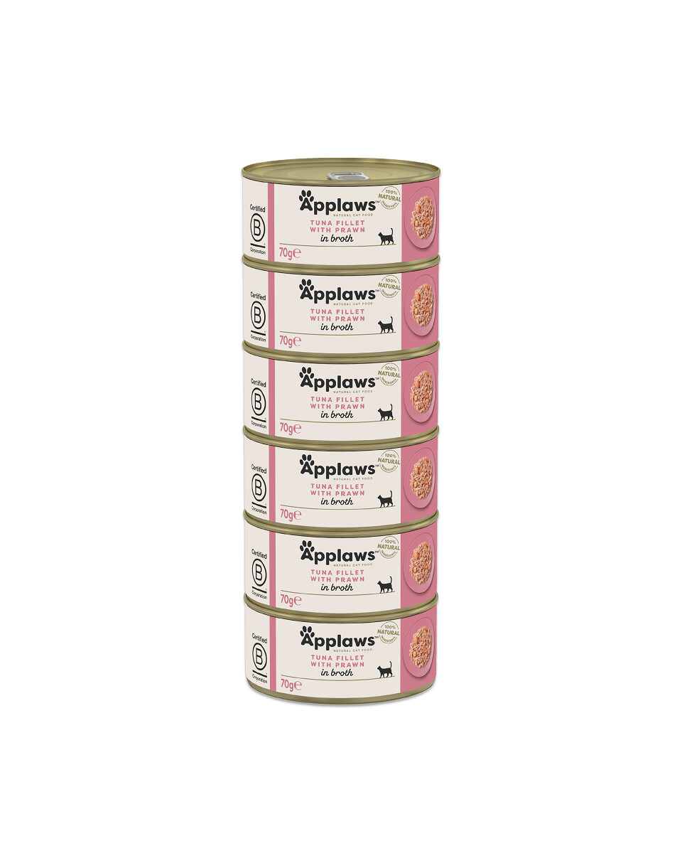 APPLAWS Cat Tin Adult - Filet de thon avec crevettes en bouillon - 6x70g