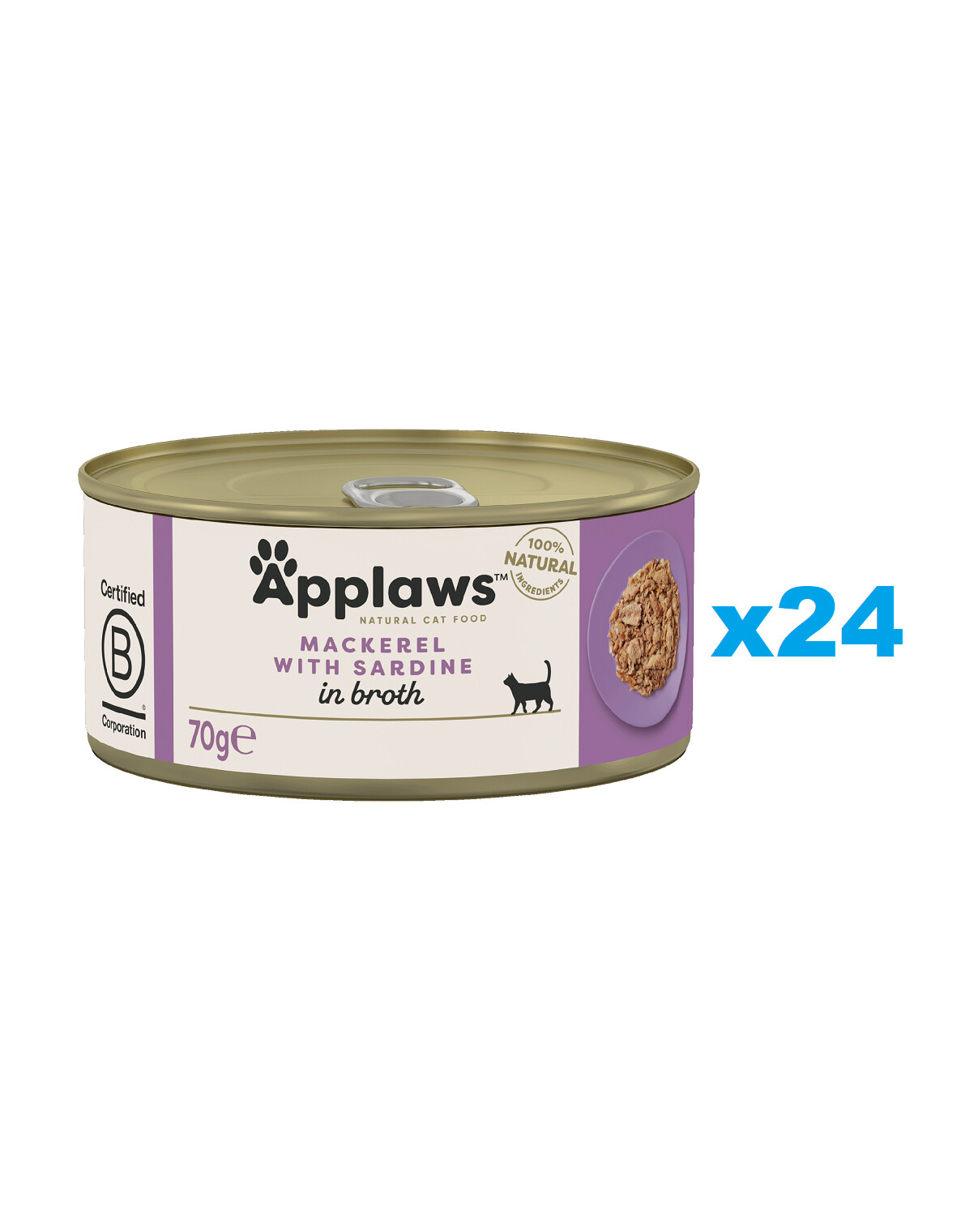 Maquereau 70%, Sardine 5%, Bouillon de poisson 24%, Riz 1%. Sans additifs.