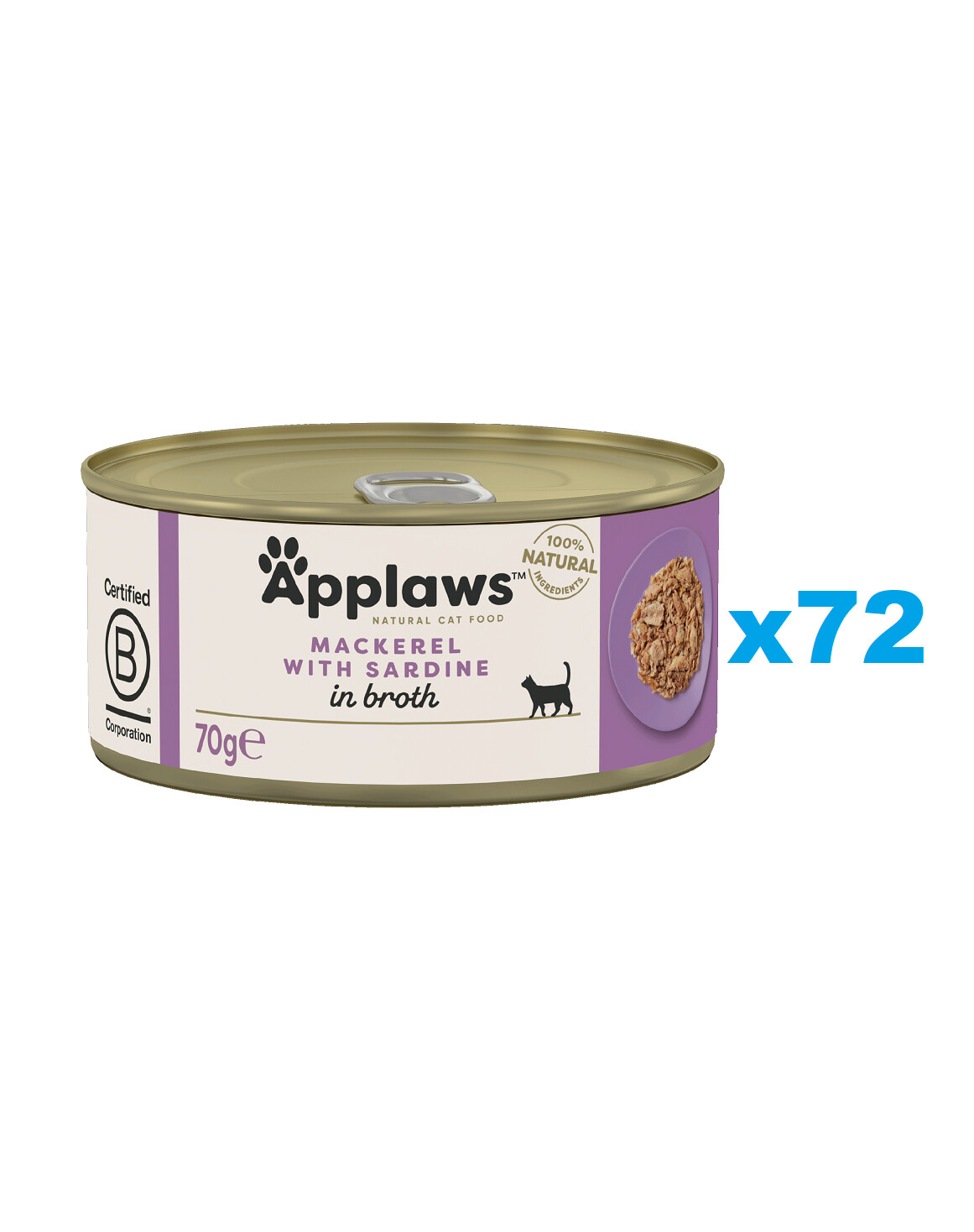 Maquereau 70%, Sardine 5%, Bouillon de poisson 24%, Riz 1%. Sans additifs.