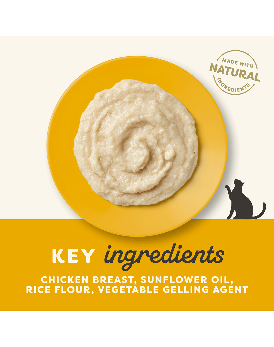 Cette nourriture se compose uniquement d'ingrédients naturels, énumérés dans la composition. Elle ne contient aucun autre ingrédient superflu. Le poulet contenu dans cette nourriture fournit des protéines animales avec le meilleur profil d'acides aminés pour les chats.