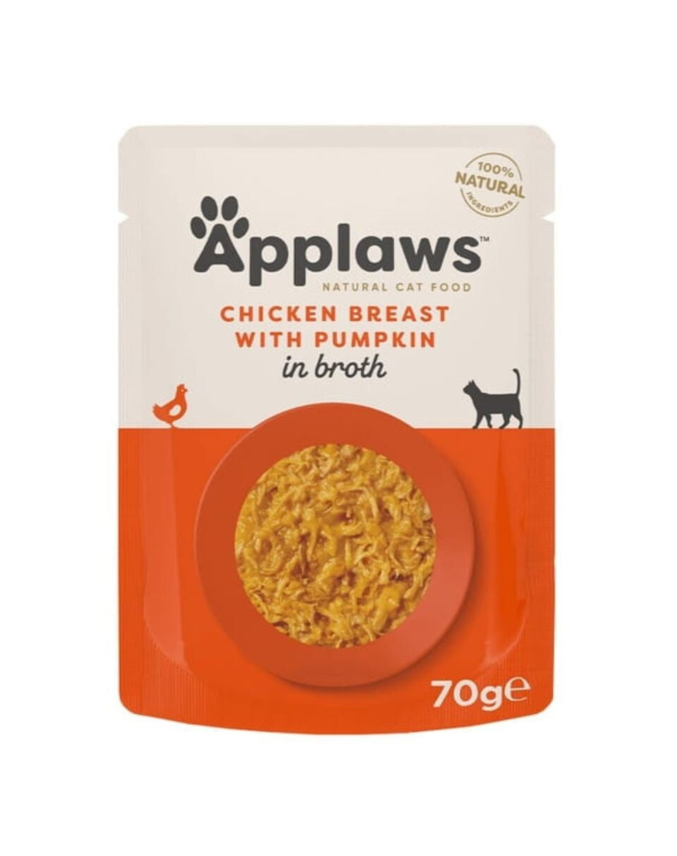 L'aliment contient des ingrédients sélectionnés - des morceaux de viande de poulet pur, avec l'ajout de riz et de citrouille. L'ajout d'une quantité importante de légumes augmente la quantité de fibres et peut donc aider les chats souffrant de constipation.