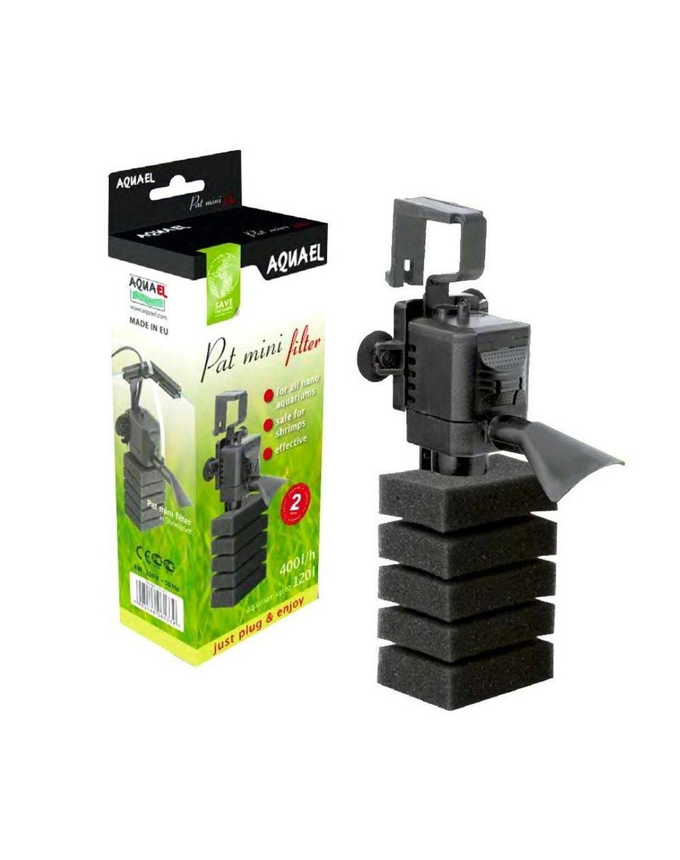 AQUAEL PAT MINI est un filtre interne miniature conçu pour être installé dans les aquariums de petite et moyenne taille. L'appareil se compose d'une petite tête, d'une éponge filtrante soigneusement sélectionnée et d'une éponge dense supplémentaire (PPI 45).