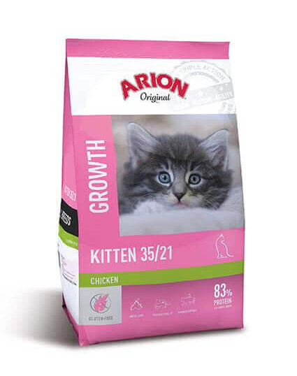 Arion Original Cat Kitten 35/21 nourriture pour chatons à teneur réduite en amidon. Au cours de leur première année de vie, les chatons augmentent leur poids de près de 20 fois. ARION Original Kitten 35/21 a été développé pour répondre aux besoins des chatons en pleine croissance. Au cours des premières semaines de leur vie, leur système digestif n'est pas en mesure d'absorber de grandes quantités d'amidon. ARION Original Kitten 35/21 est fabriqué à partir de protéines animales de la plus haute qualité et est enrichi d'une variété de prébiotiques et de sources de fibres soigneusement sélectionnées. ARION Original Kitten 35/21 est enrichi d'un mélange de divers antioxydants naturels afin de stimuler le développement du système de défense naturel du chaton. La teneur accrue en vitamines et minéraux contribue également au développement du système immunitaire adulte et favorise la formation d'os et de dents solides.