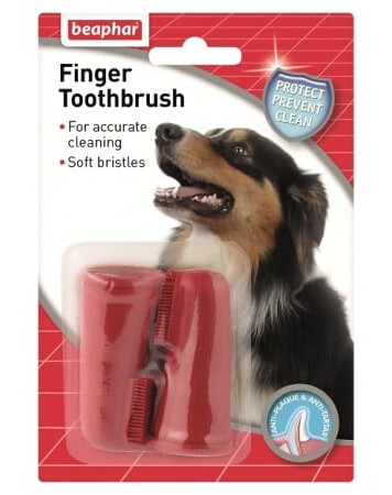 Utilisation de la brosse à dents Beaphar Thimble Toothbrush : la brosse à dents s'adapte à la taille de votre doigt, ce qui permet d'atteindre confortablement toutes les zones difficiles d'accès de la bouche. Assurez-vous que votre chien est calme avant de commencer le toilettage. La brosse à dé doit être légèrement humidifiée avec de l'eau avant d'appliquer le dentifrice Beaphar. Brossez délicatement toutes les dents de votre chien. L'hygiène bucco-dentaire peut être considérée comme faisant partie du toilettage et doit être effectuée quotidiennement jusqu'à l'obtention de résultats satisfaisants.