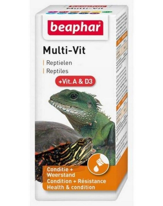 Beaphar Turtle Vitamin est un complément vitaminé liquide pour l'alimentation des tortues aquatiques et terrestres, d'autres reptiles de terrarium ainsi que des poissons. Ce produit soutient le développement normal, l'immunité et la condition des animaux, en particulier pendant les périodes de croissance, de convalescence ou de besoin accru en vitamines.