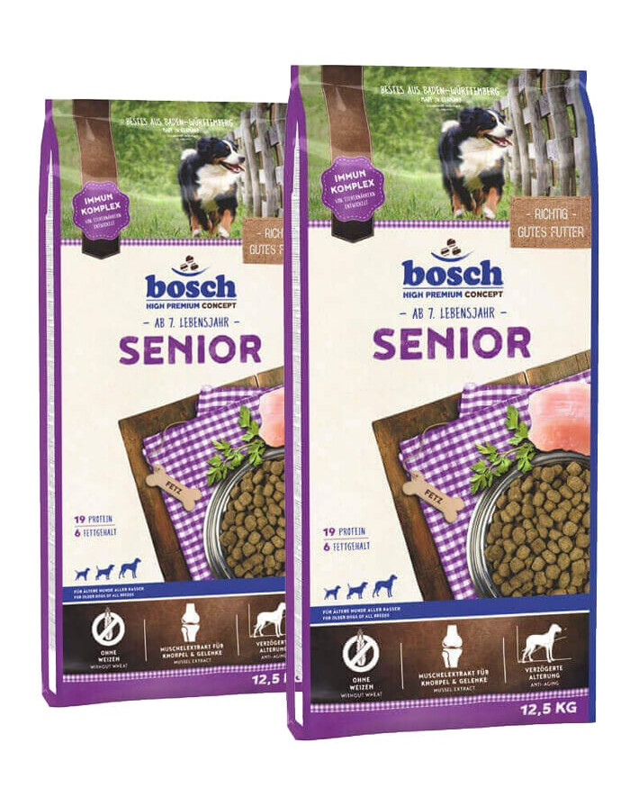 La teneur en protéines, sodium et phosphore a été réduite afin de soulager les organes internes et les processus métaboliques. De l'extrait de moule de Nouvelle-Zélande a été ajouté pour soutenir et protéger les articulations. Cette nourriture répond aux besoins des chiens plus âgés, à partir de 7/8 ans.