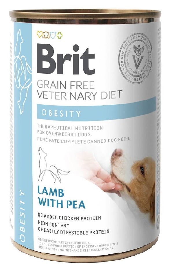 Aliment complet vétérinaire à base d'agneau et de pois pour les chiens adultes en surpoids ou sujets à la prise de poids. L'alimentation aide à maintenir un poids corporel sain.