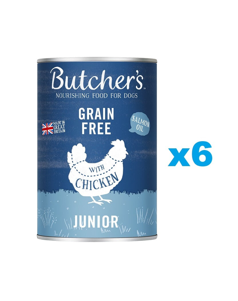 Butcher's Original Junior® sont des nourritures sans céréales conçues pour répondre aux besoins nutritionnels des chiots. Les produits de cette gamme sont conçus pour donner aux chiots le meilleur départ possible dans leur vie d'adulte. Tous les produits sont fabriqués à partir d'ingrédients naturels et sont conditionnés dans des emballages respectueux de l'environnement.