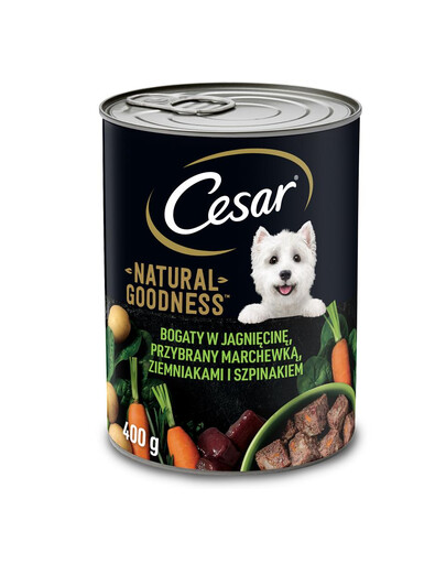 Les conserves Cesar® Natural Goodness Lamb Rich sont des repas complets pour chiens adultes, fabriqués à partir d'ingrédients naturels.