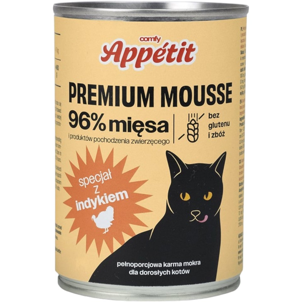 Comfy Appetit Premium Mousse contient 96% de viande et d'ingrédients d'origine animale (dont 28% de dinde), le reste étant constitué de vitamines et de minéraux.