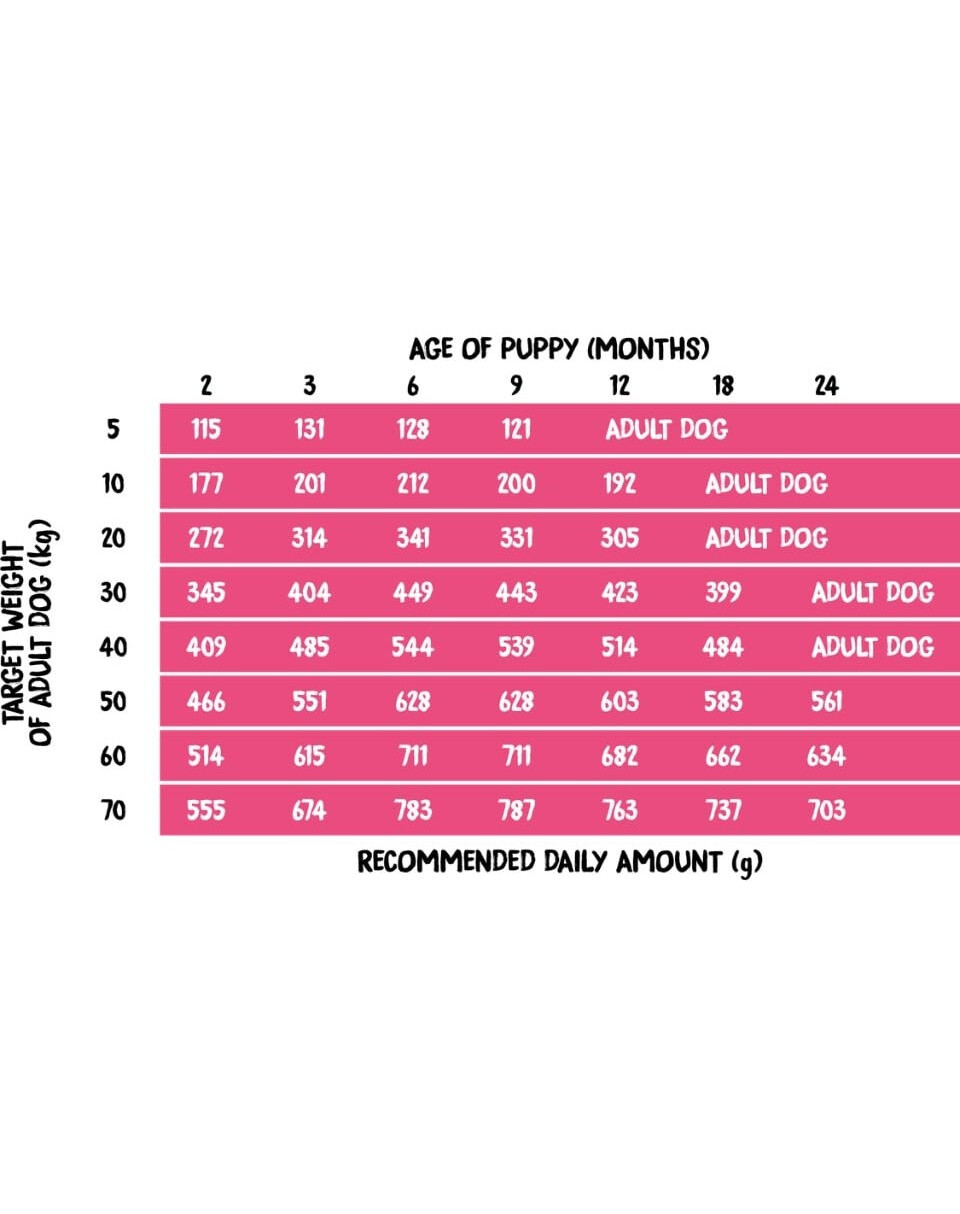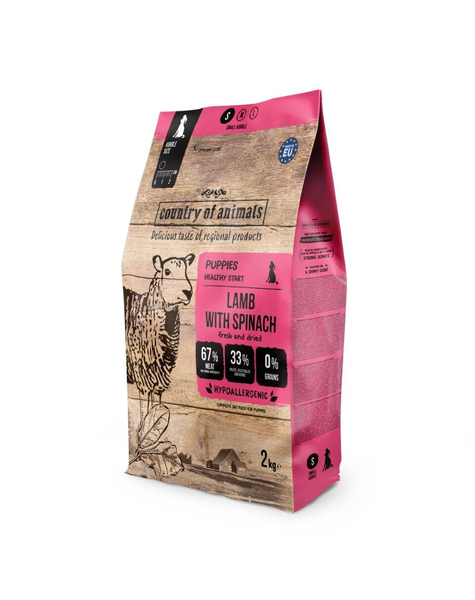L'agneau est une viande délicate et saine, se distinguant par sa teneur en acide linoléique, qui présente des propriétés inhibitrices des processus cancéreux. L'ajout de dinde maigre et de poulet riche en protéines crée un excellent menu pour un jeune chien. La recette contient également des épinards - source de vitamine C et de magnésium, essentiels pendant la période de croissance intense. De plus, l'acide folique présent soutiendra le bon fonctionnement du système nerveux. C'est un bon départ dans la vie !
