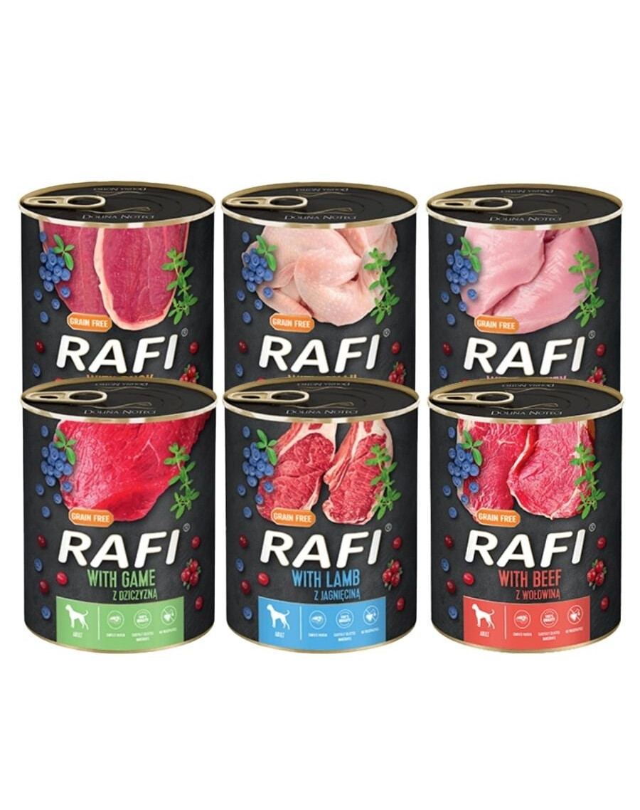 La recette est sans céréales et convient aux chiens ayant un système digestif sensible et des intolérances. La teneur élevée en protéines animales garantit la bonne condition physique de votre chien et sa récupération rapide après l'effort. La viande et les produits dérivés associés aux myrtilles et aux canneberges constituent une recette savoureuse, riche en acides aminés, en minéraux et en vitamines. Le thym, grâce à ses huiles et à ses substances biologiquement actives, a un effet relaxant sur la musculature du tube digestif du chien et favorise une bonne digestion.