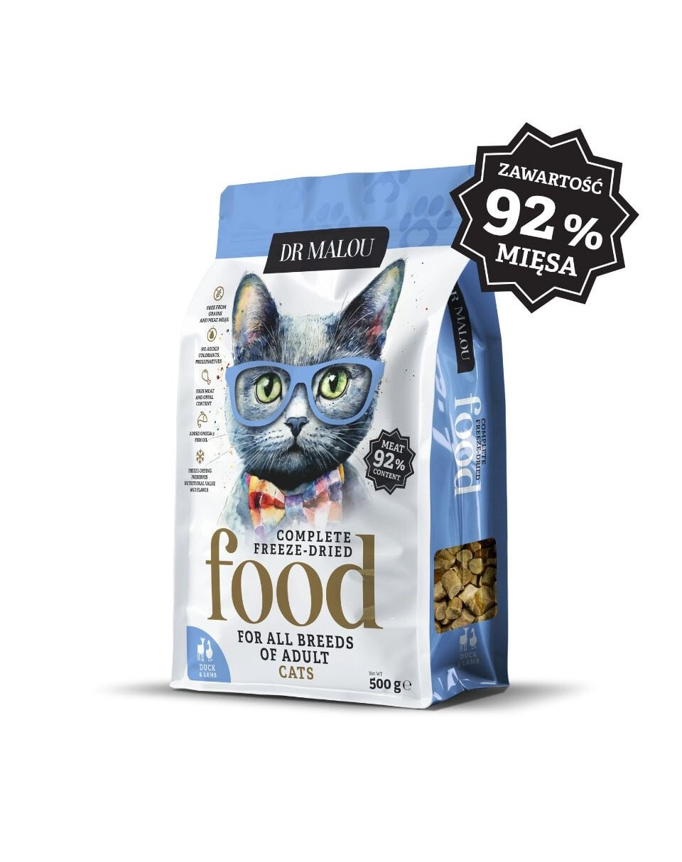 Dr Malou Canard avec agneau – Nourriture lyophilisée naturelle pour chats adultes