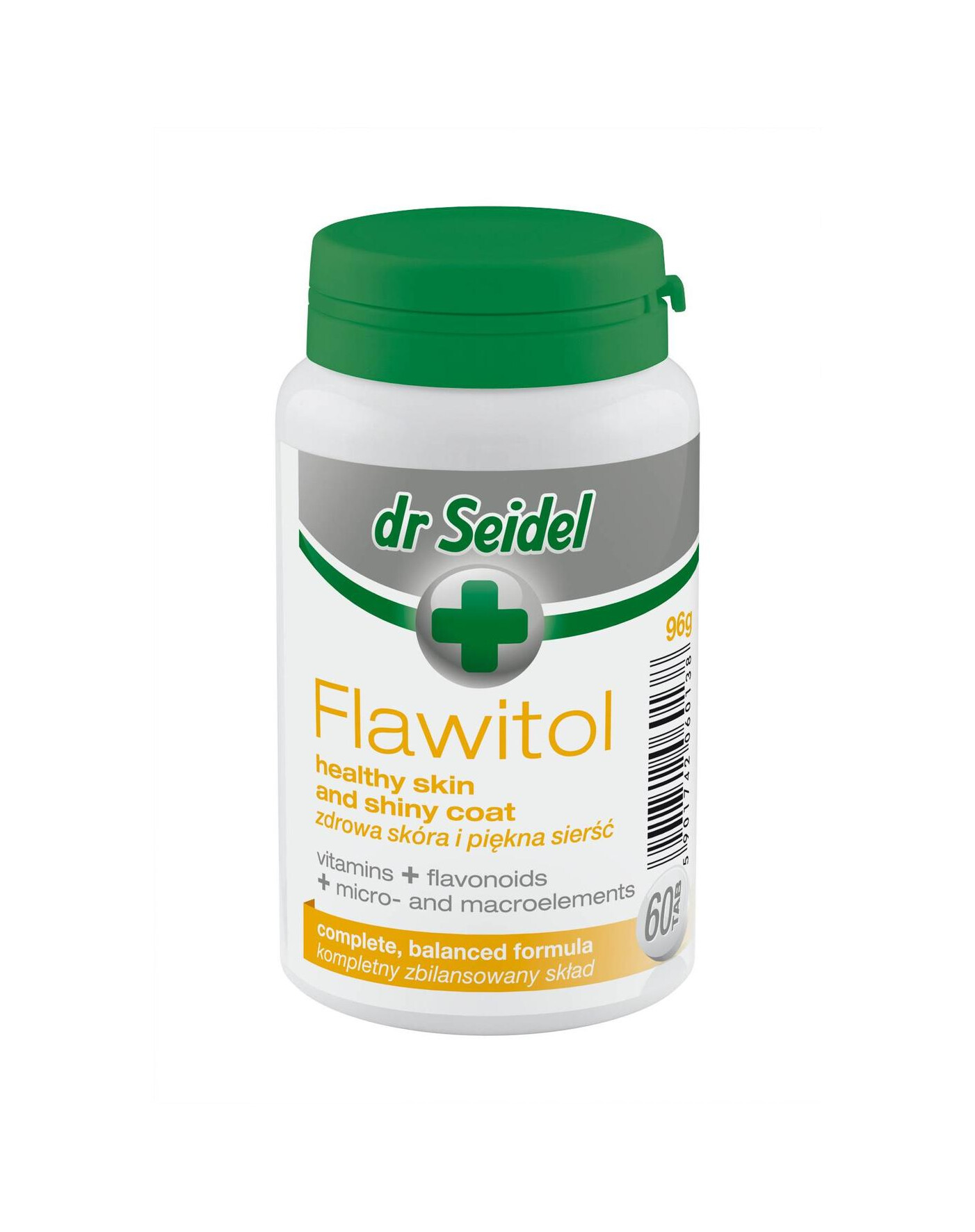 L'état adéquat de la peau est assuré par le zinc, la biotine, l'acide pantothénique ainsi que les vitamines A et E contenues dans la préparation. L'ajout de flavonoïdes contribue à augmenter la résistance de l'organisme à de nombreuses maladies et retarde les processus de vieillissement. Il prévient le dessèchement et le pelage excessif de la peau. Le pelage devient sain et brillant.