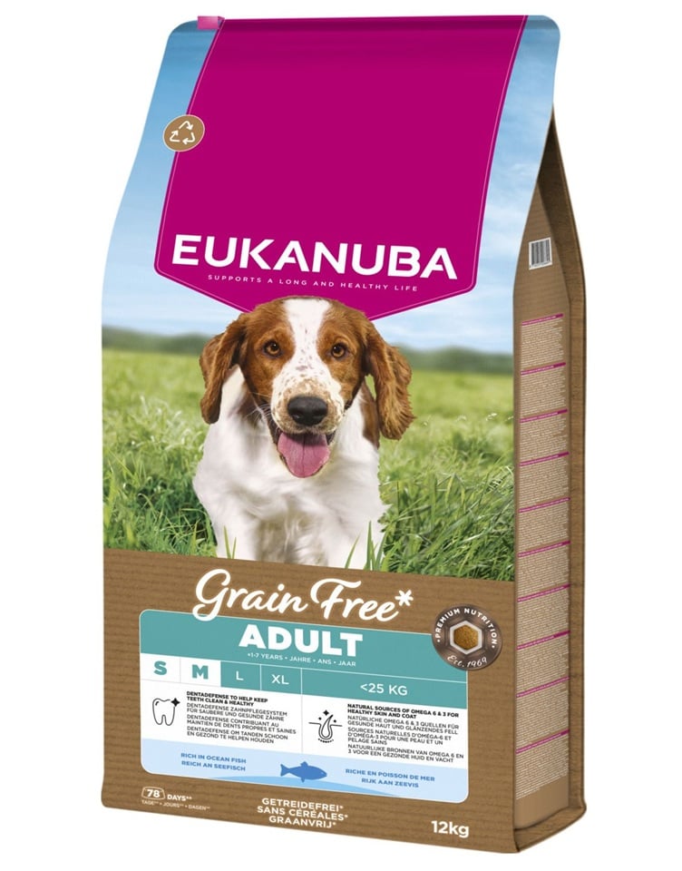 Eukanuba Grain Free est un excellent choix pour les chiens ayant un système digestif sensible, une intolérance aux céréales ou nécessitant un régime délicat, monoprotein à base de poisson.