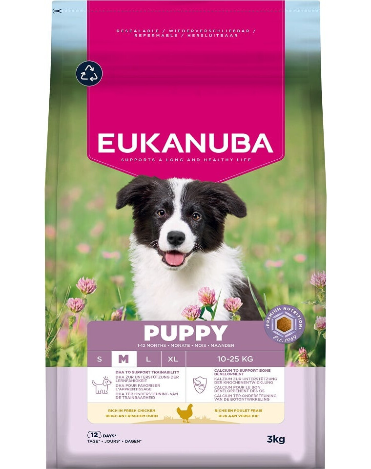 EUKANUBA Puppy Medium Breeds Chicken – nourriture sèche pour chiots de races moyennes, riche en poulet frais