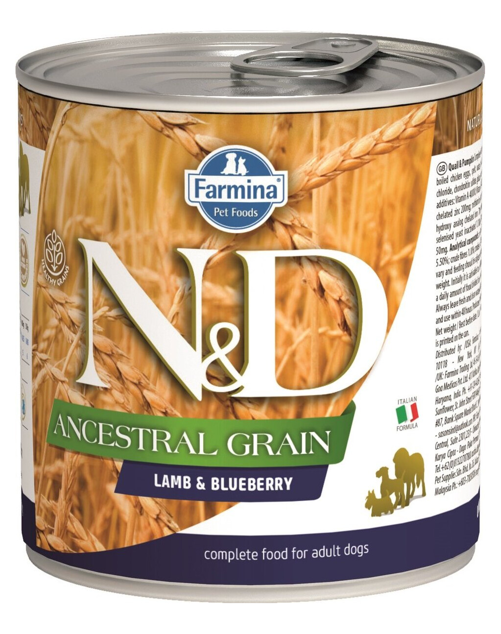 Agneau (50%), hareng, œufs de poule cuits, épeautre, avoine, huile de poisson, myrtilles (2%), fructo-oligosaccharides, chlorure de choline, sulfate de chondroïtine, glucosamine, vitamines, minéraux