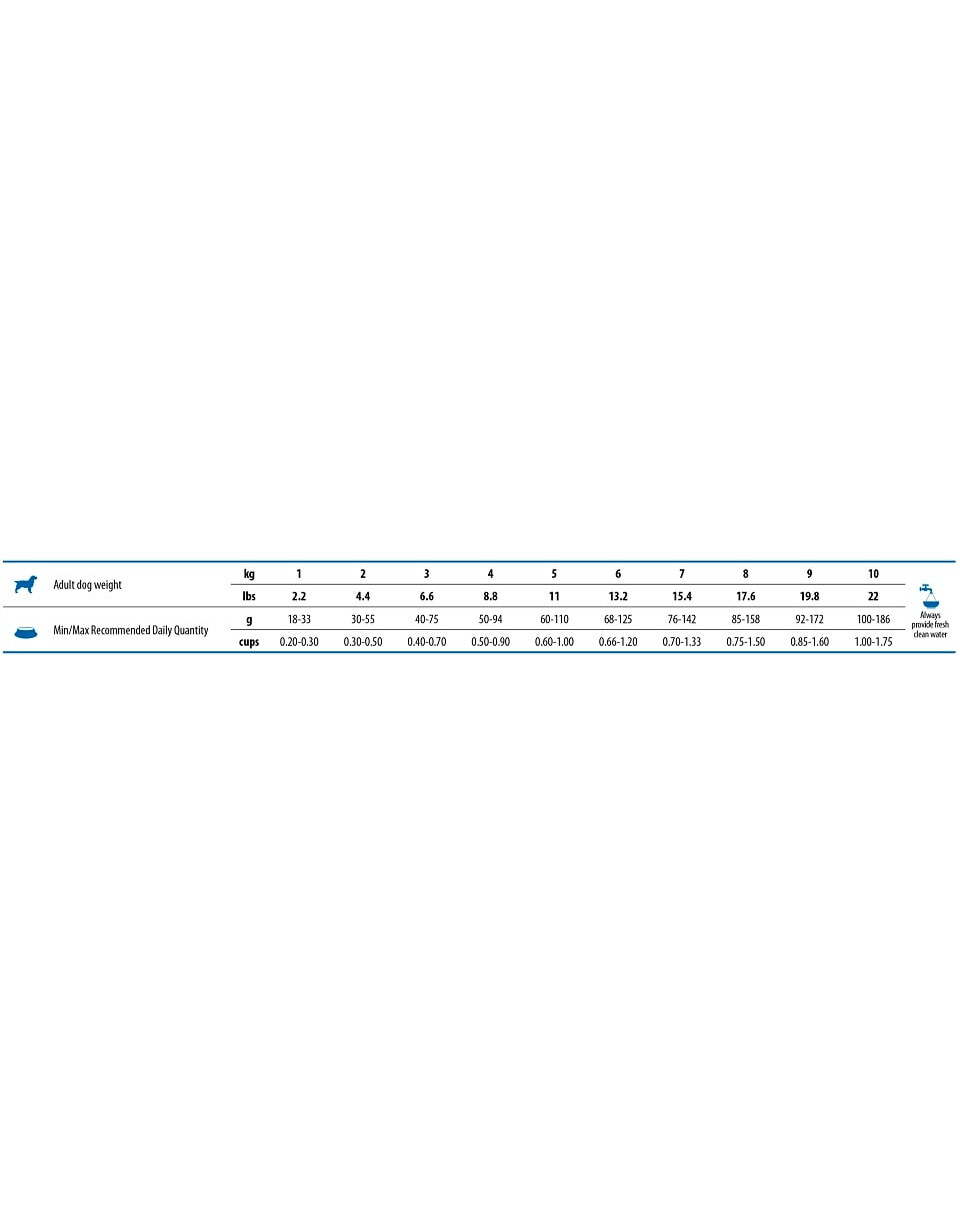 Le dosage indiqué est indicatif et doit être ajusté individuellement en fonction du degré d'activité et de l'état de santé de l'animal.