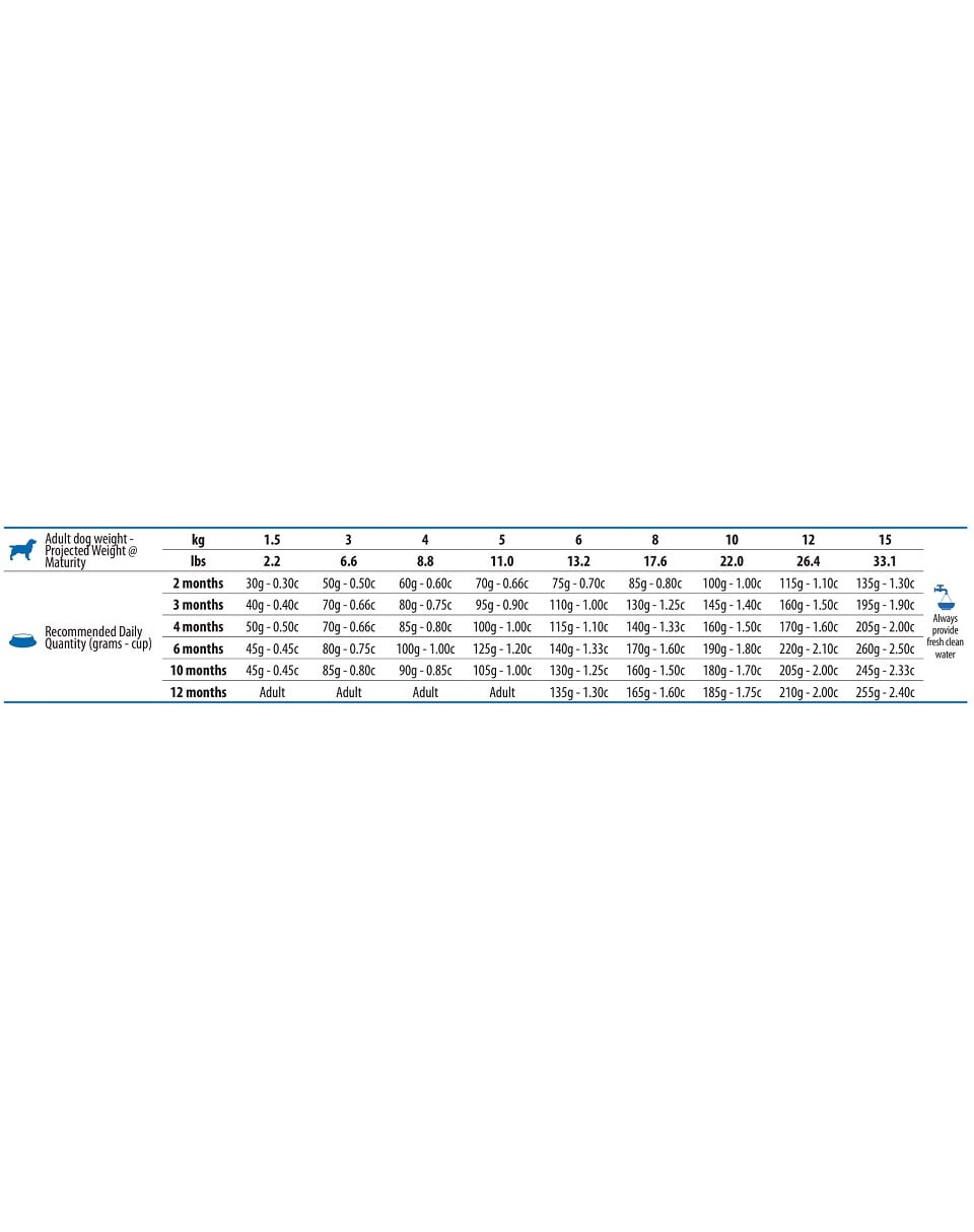 Nutrition équilibrée – alimentation complète adaptée aux besoins des chiots en croissance et de leurs mamans.