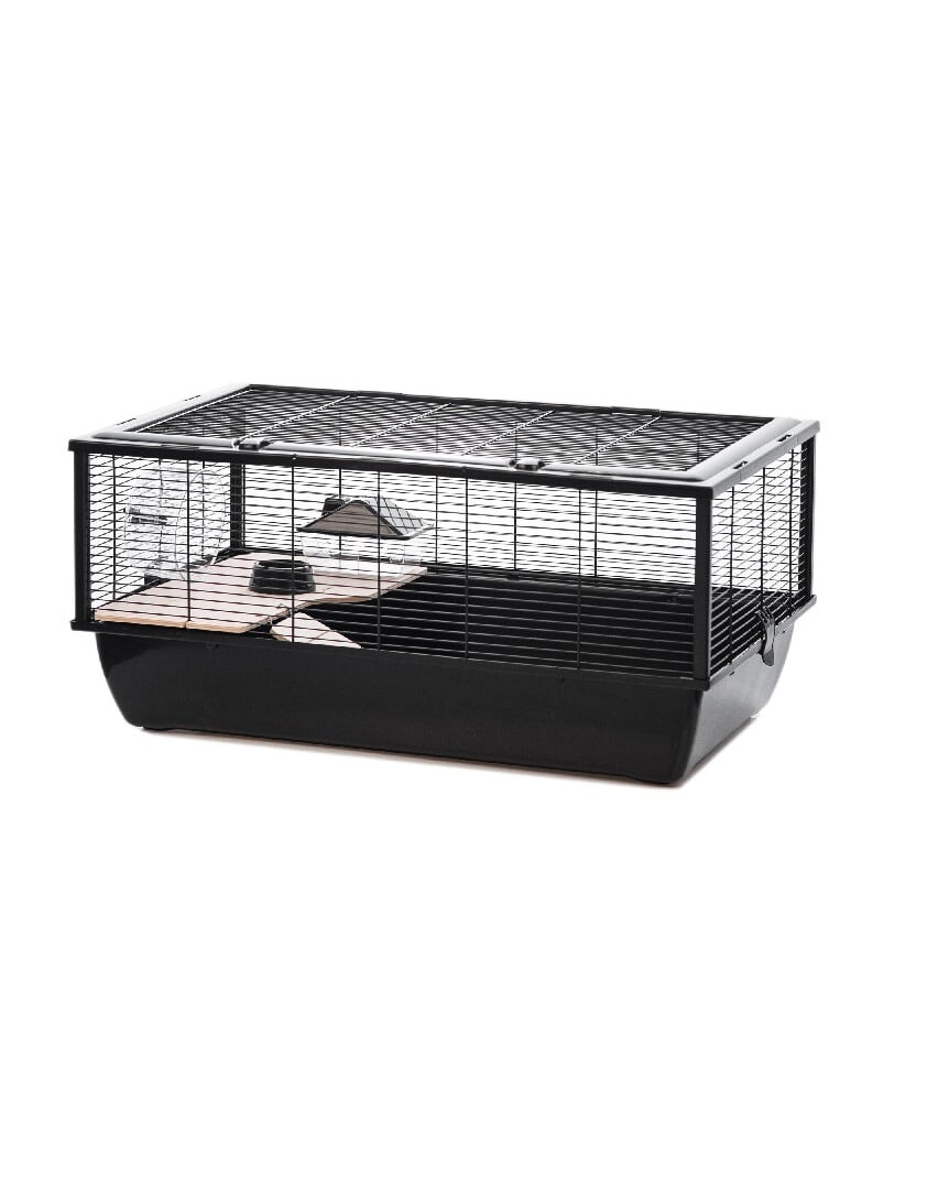 Cage pour rongeurs. Fonctionne bien pour les animaux tels que le hamster ou le cochon d'Inde. Fabriqués en matériaux non toxiques, les fils sont sans danger pour les animaux. La cage comprend un moulinet, un bol et une maison. Peut être ouvert par le haut.