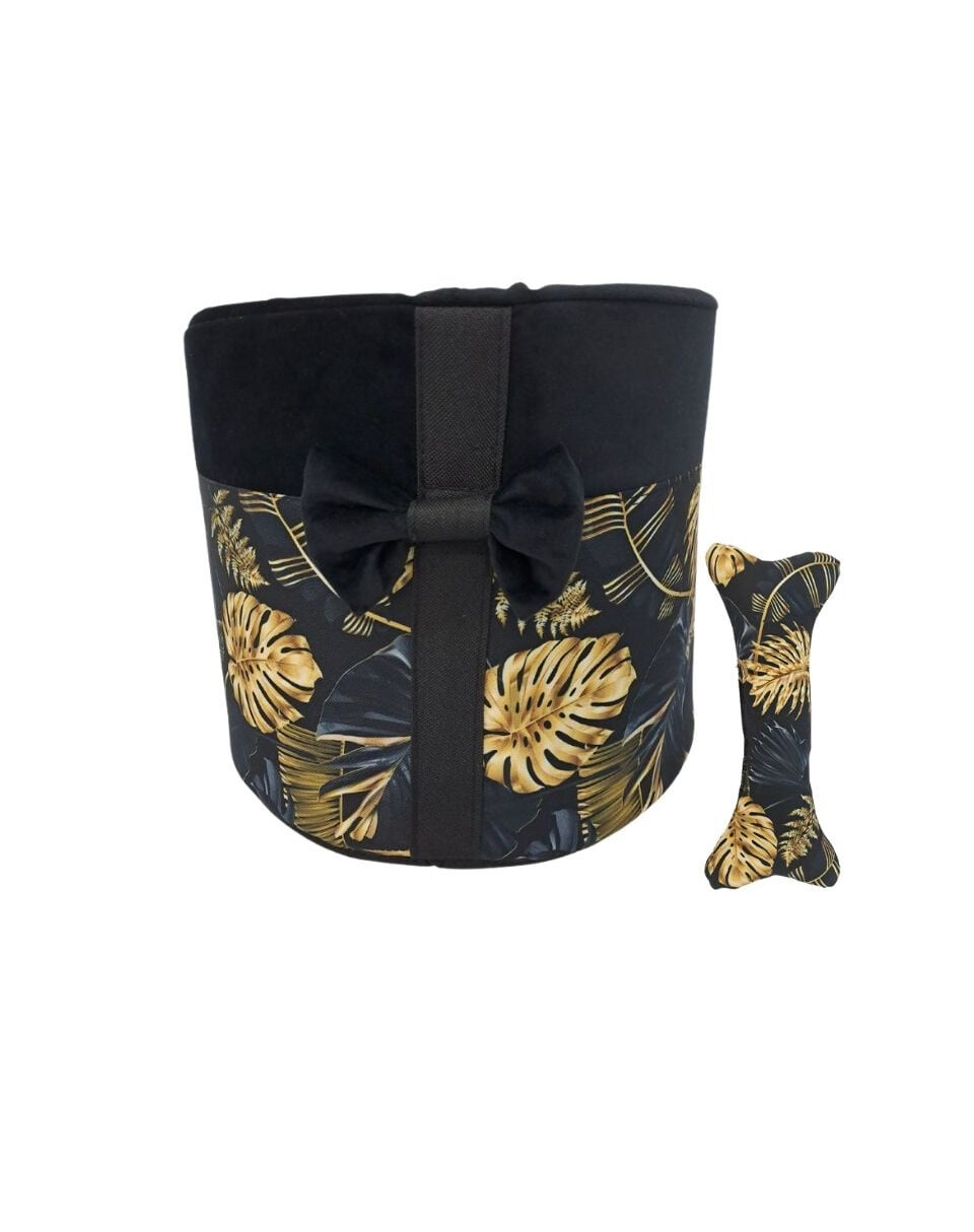 Le panier à jouets a des côtés rembourrés en mousse spéciale. Il est recouvert d'un tissu imprimé de feuilles d'or. Il s'adapte à tous les intérieurs et leur donne de l'ambiance et du caractère.