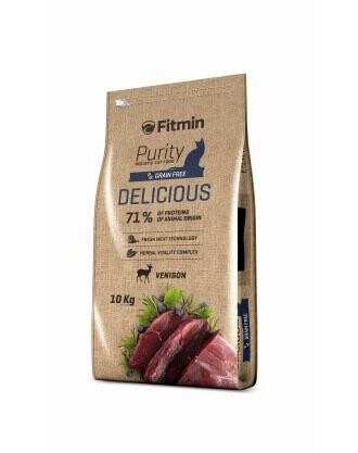 FITMIN Purity Delicious est une nourriture complète pour chats adultes, avec une teneur en protéines d'origine animale de 71%.
