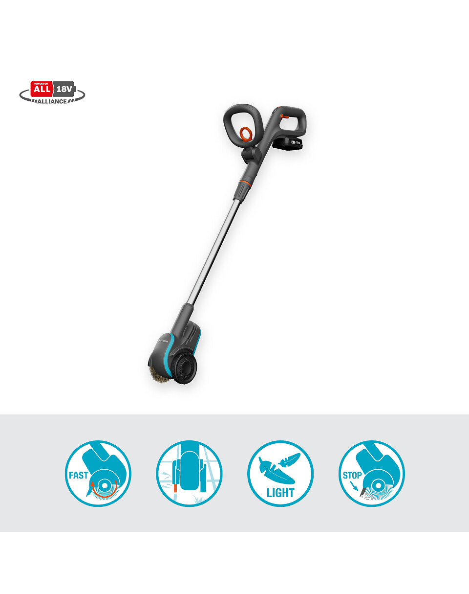 La brosse à joints sans fil GARDENA simplifie et rationalise le processus de désherbage grâce à son design puissant et ergonomique.