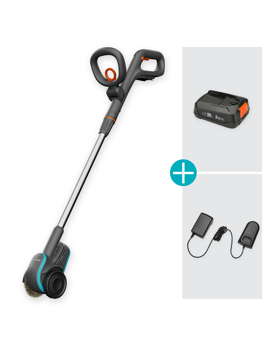 Enlever les mauvaises herbes des coutures est une activité fastidieuse et peu pratique, la flexion constante pendant cette opération est fatigante et cause des tensions dans le dos, et l'utilisation de produits chimiques agressifs est nocive pour l'environnement. La brosse à joints sans fil innovante GARDENA 1800/18V P4A est extrêmement puissante et permet un nettoyage précis et efficace sur simple pression d'un bouton. Une batterie rechargeable et un chargeur sont également inclus pour plus de commodité.