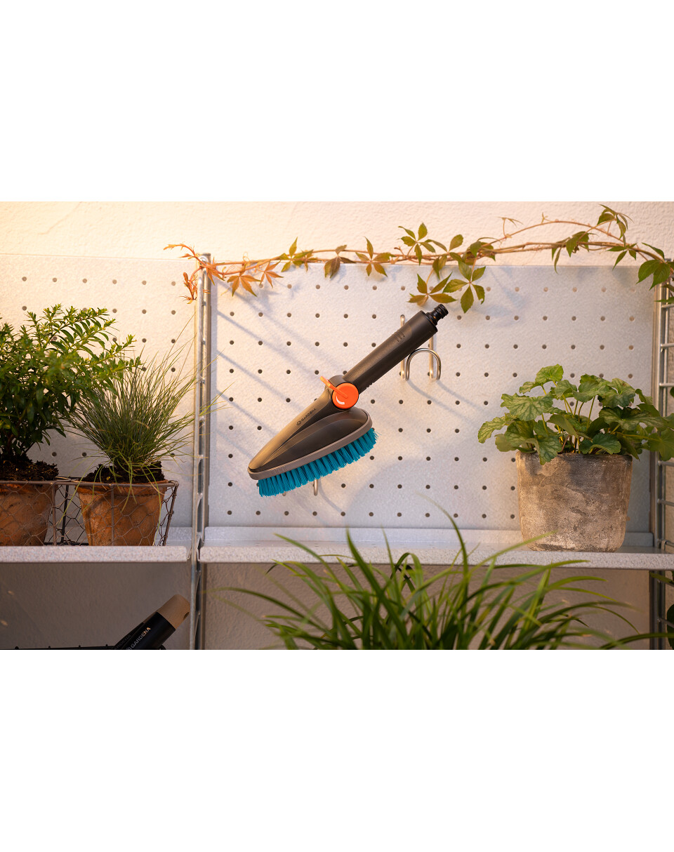 La brosse à main dure GARDENA Cleansystem M permet un nettoyage humide efficace et minutieux des petites surfaces extérieures non sensibles.
