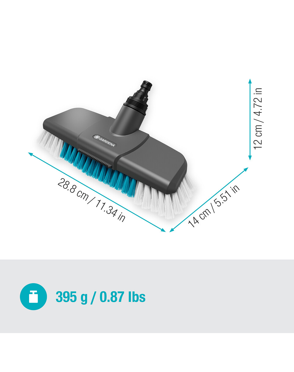 La brosse à manche dur GARDENA Cleansystem est conçue pour le nettoyage humide intensif des grandes surfaces robustes telles que les entrées de garage.
