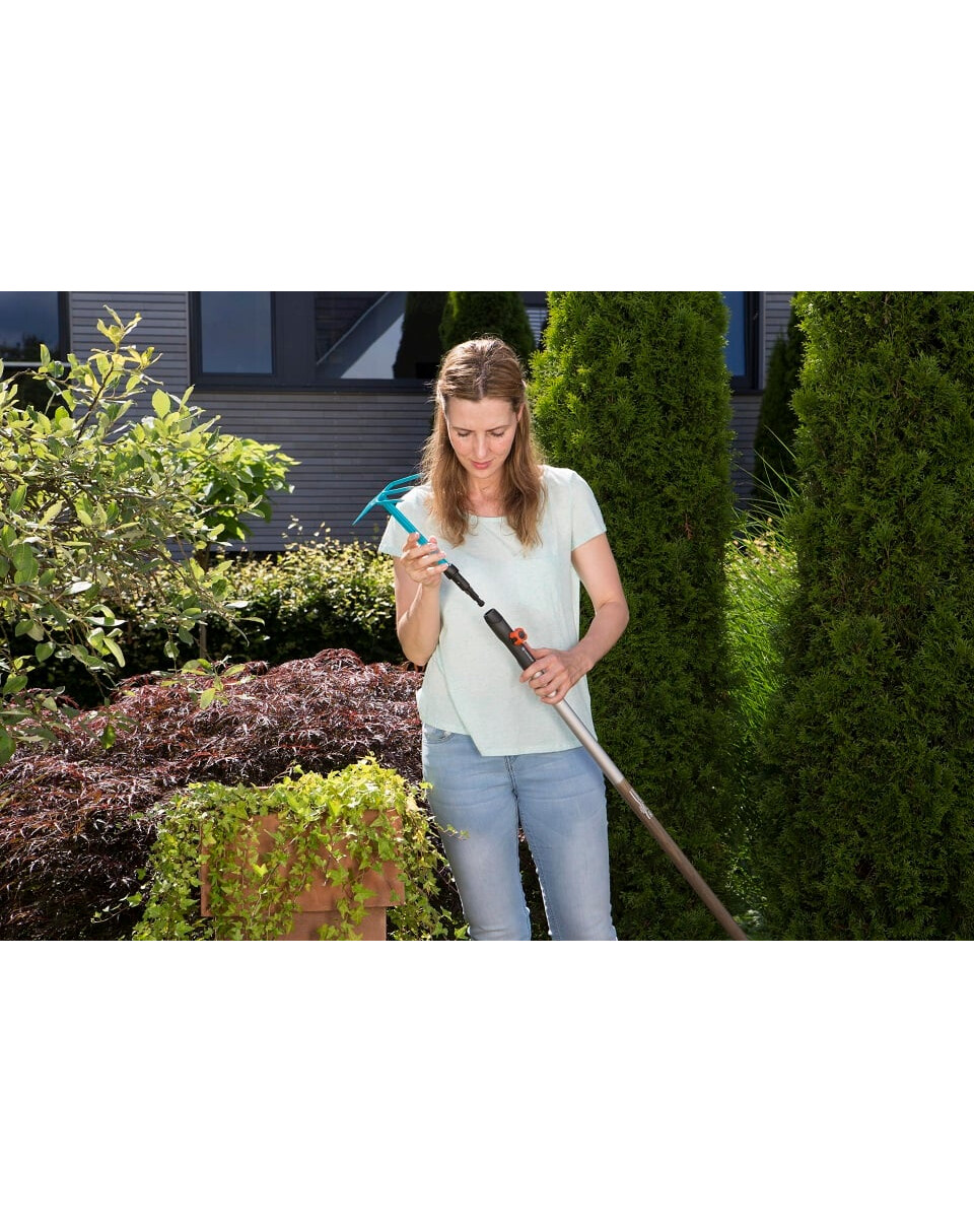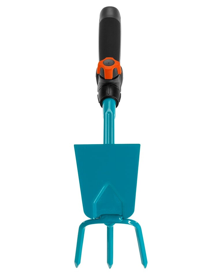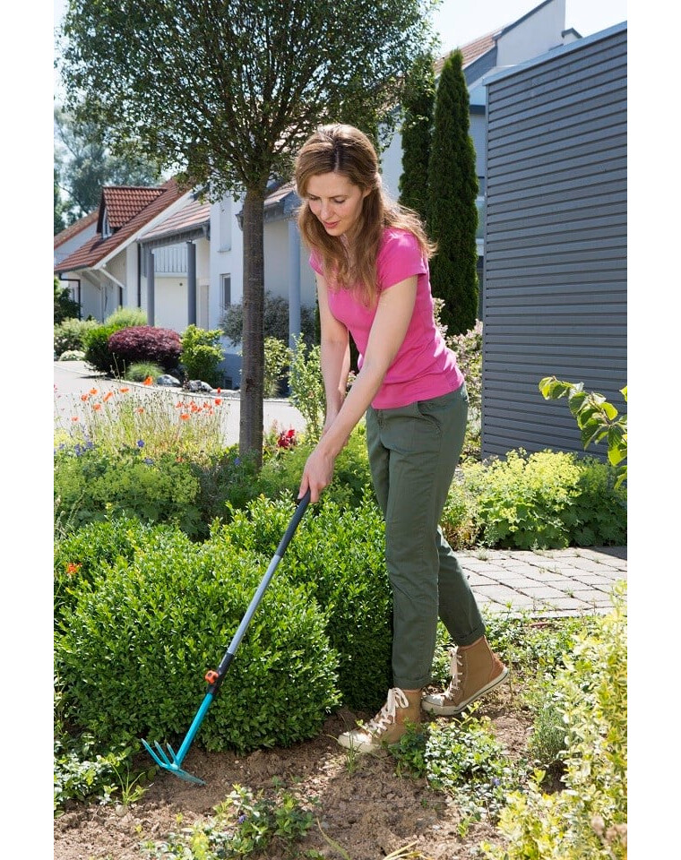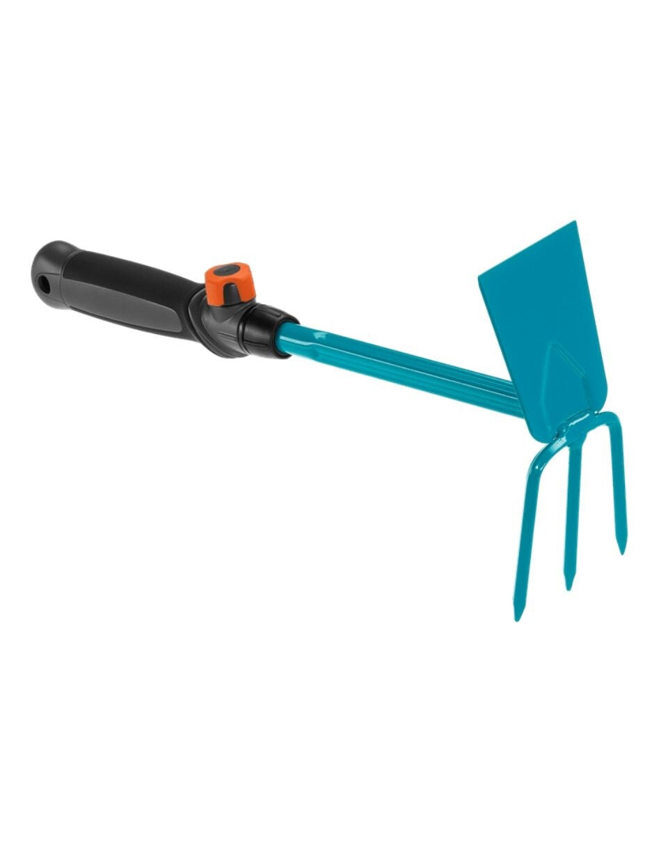 GARDENA Combisystem - la houe simple pour ameublir, aérer et désherber. Le système combiné GARDENA offre une grande souplesse d'utilisation grâce à des outils interchangeables. La binette est compatible avec tous les manches du système combiné GARDENA et se fixe facilement sur le manche. Pour travailler confortablement et sans se pencher, il suffit de retirer le manche et de le remplacer par le manche du système combiné. Le manche de rallonge Combisystem (Art. No. 8900-20) est idéal pour rallonger les outils à main. La connexion sûre de la houe au manche assure un travail confortable dans toutes les situations. La poignée ergonomique avec des composants souples garantit une utilisation confortable et ses courbes empêchent l'outil de glisser. La houe droite pratique a trois dents d'un côté et une lame droite de l'autre. La largeur de travail est de 6,5 cm. Grâce à l'acier thermodurci de haute qualité revêtu de plastique, la houe droite est résistante à la corrosion et extrêmement durable. Combisystem - Le porte-outils flexible permet de ranger la houe de manière pratique.