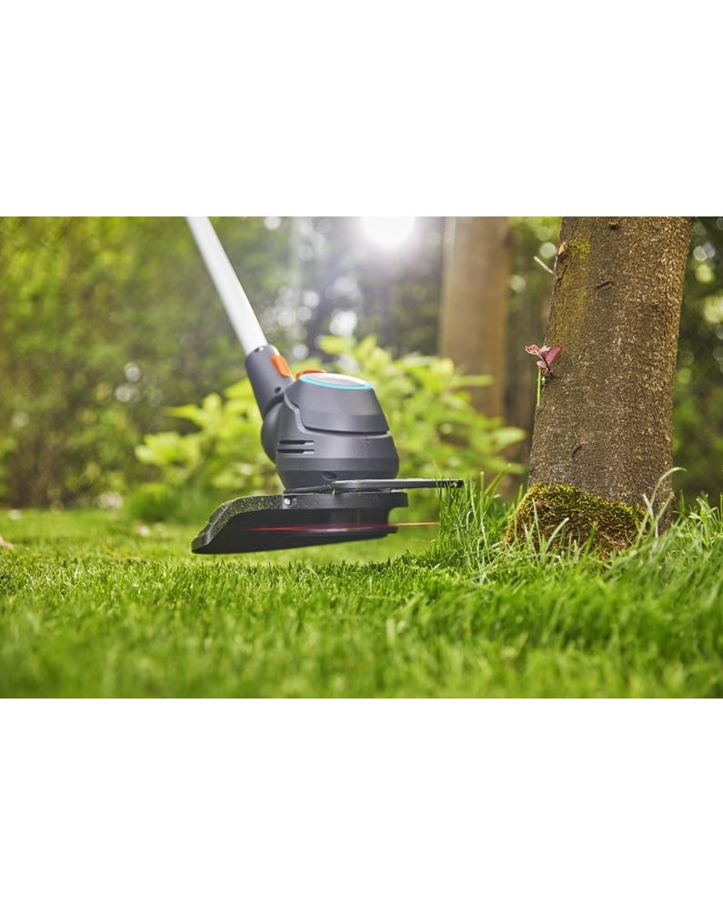 Grâce à la poignée réglable et au manche télescopique, il est possible d'adapter le coupe-bordure à ses propres besoins, de sorte que l'utilisateur puisse travailler dans une position verticale et confortable.