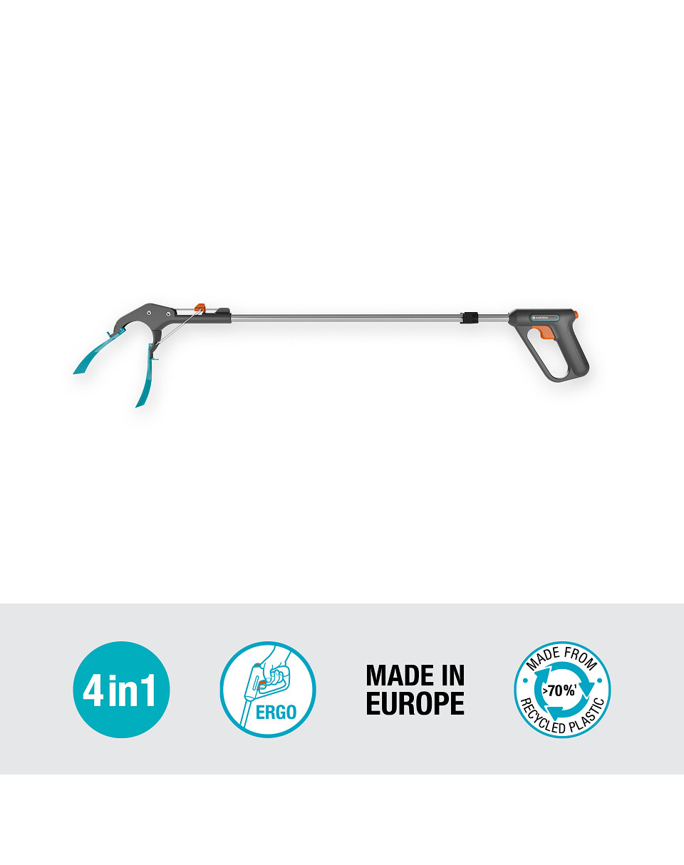 La pince 4 en 1 GARDENA est conçue pour un travail ergonomique dans le jardin et est idéale pour ramasser les déchets dans et autour du jardin.