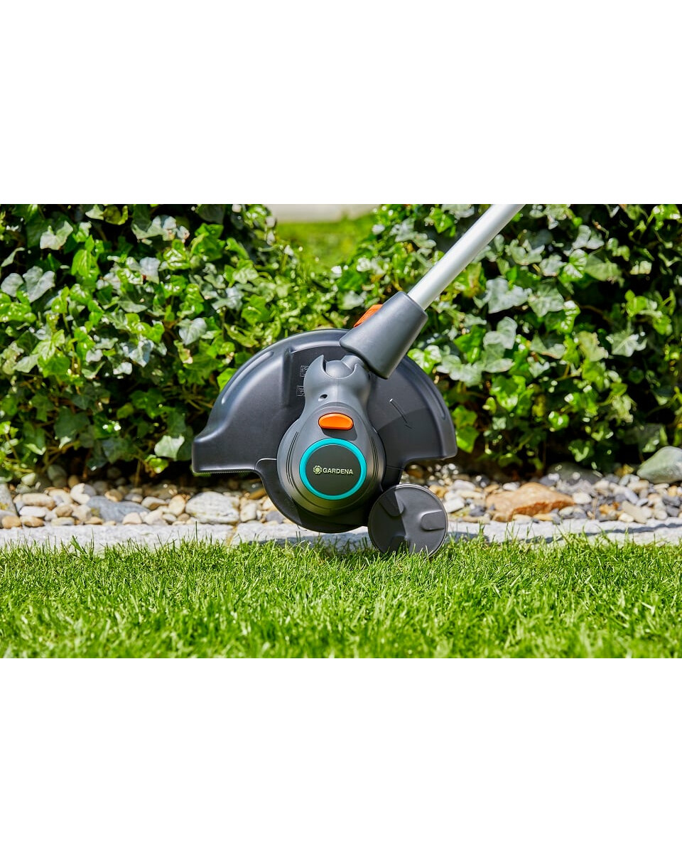 Vous pouvez facilement régler la débroussailleuse selon vos besoins avant de commencer à travailler. La poignée avant et la poignée télescopique peuvent être réglées pour offrir une position confortable pour le jardinage. Vous pouvez également modifier la position de la tête de coupe. Cette fonction est particulièrement utile pour tondre autour d'obstacles tels que des tables. La position verticale de la tête vous permet de tailler les bords de la pelouse : vous pouvez ainsi couper facilement la pelouse le long des chemins ou des clôtures.