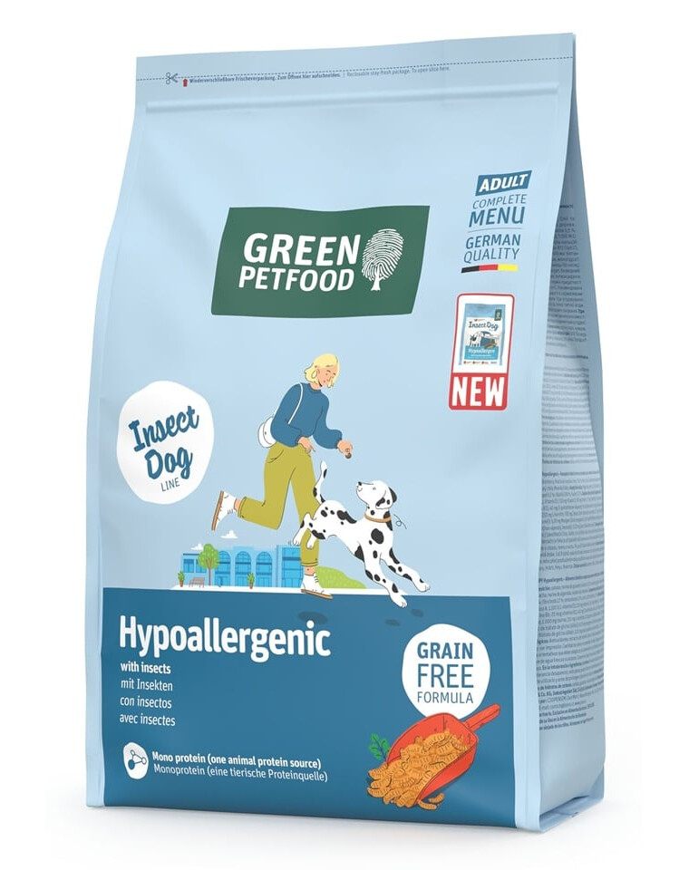 Alimentation sèche sans céréales, hypoallergénique GREEN PETFOOD InsectDog Hypoallergenic est un repas complet pour chiens adultes, spécialement conçu pour les animaux ayant un système digestif sensible et des prédispositions aux allergies.