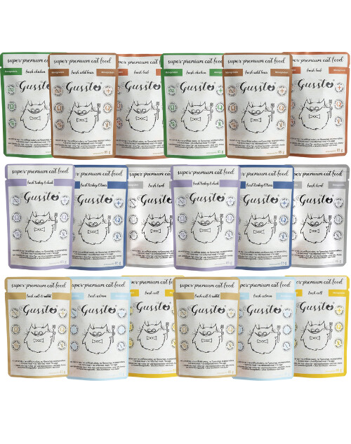 Les pâtées sont fabriquées à partir d'ingrédients de la plus haute qualité et contiennent 70 % de viande saine et d'abats de dinde et de poulet. Grâce à sa composition simple, les besoins nutritionnels des chats en tant qu'espèce sont entièrement couverts. L'aliment ne contient pas de céréales ni d'autres ingrédients intolérés par les chats. Le bouillon propriétaire de la viande augmente l'appétence et donne à l'aliment une texture caractéristique dont les chats raffolent. L'huile de chardon augmente le caractère gras, de sorte que même les chats difficiles l'apprécieront.