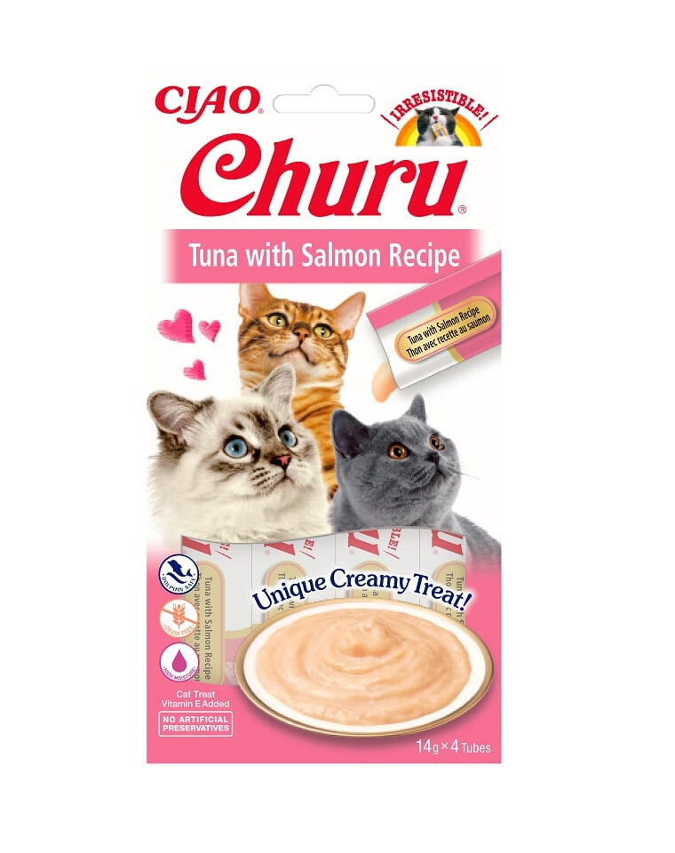 Friandise crémeuse au thon et au saumon pour votre chat.