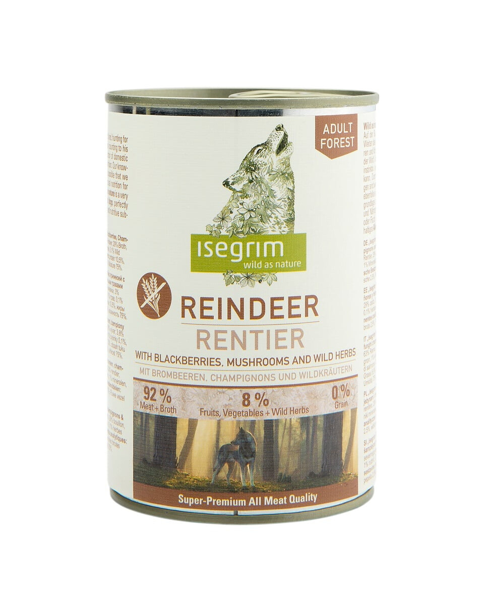 ISEGRIM Adult Forest Reindeer with blackberries and mushrooms est un aliment complet pour chiens adultes. La viande naturelle de renne fournit des protéines essentielles, garantissant une alimentation saine et équilibrée. L'ajout de mûres, de champignons et d'herbes sauvages fournit tous les nutriments nécessaires à votre animal. Cet aliment unique offre une expérience gastronomique et reflète parfaitement les besoins naturels de votre chien. Découvrez comment ISEGRIM gardera votre chien énergique et en bonne santé !