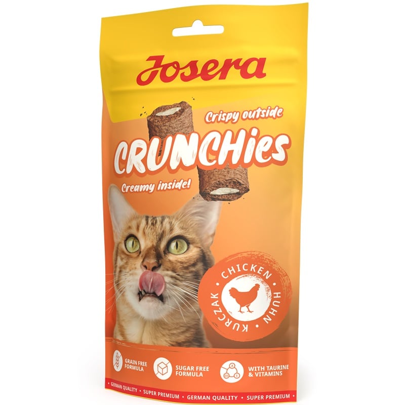 Wow, que c'est croustillant ! Les friandises Josera Crunchies Chicken offrent bien plus - car elles sont remplies d'une garniture crémeuse au délicieux poulet pour les petits chats affamés ! Ces friandises sans céréales et hypocaloriques sont la collation idéale pour chaque jour.