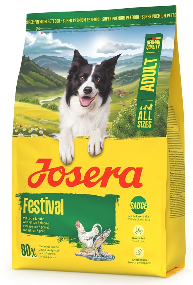 JOSERA Festival – nourriture sans gluten avec saumon et poulet dans une délicieuse sauce pour chiens difficiles