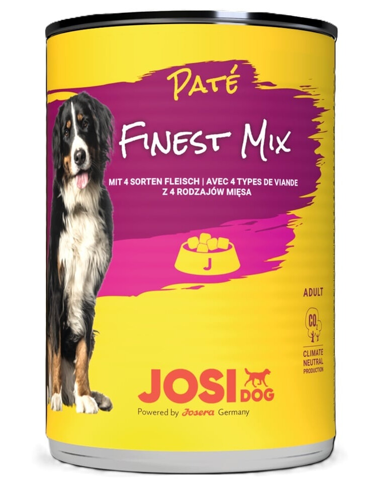 Nourriture humide complète d'une consistance pâté exceptionnellement appétissante, conçue pour les chiens adultes qui adorent la variété et le goût riche. JosiDog Pâté Fin Gourmet est un véritable festin dans la gamelle du chien – un mélange de cinq types différents de viande, fournissant des protéines complètes et des nutriments essentiels.