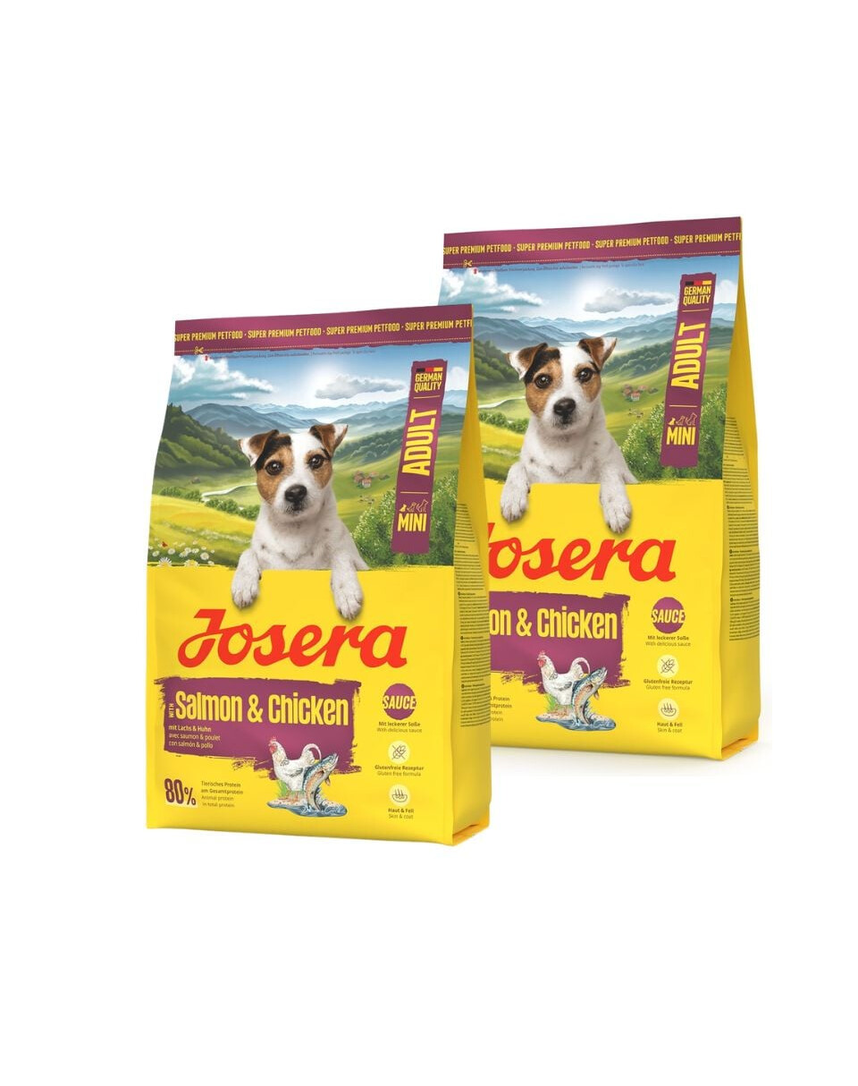 Nourriture savoureuse, équilibrée et sans gluten conçue pour les chiens adultes de petites races. JOSERA Mini Adult Salmon & Chicken combine du saumon aromatique et du poulet tendre dans une recette unique qui offre non seulement un goût excellent, mais aussi une haute valeur nutritionnelle. Les petites croquettes peuvent être données sèches ou après avoir été trempées dans l'eau, créant ainsi un repas appétissant avec une délicieuse sauce.